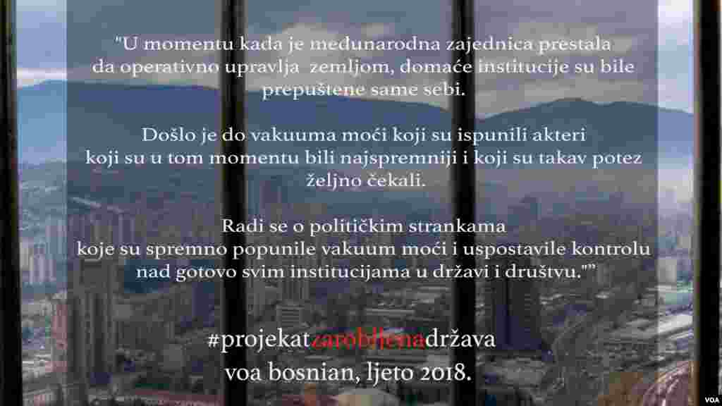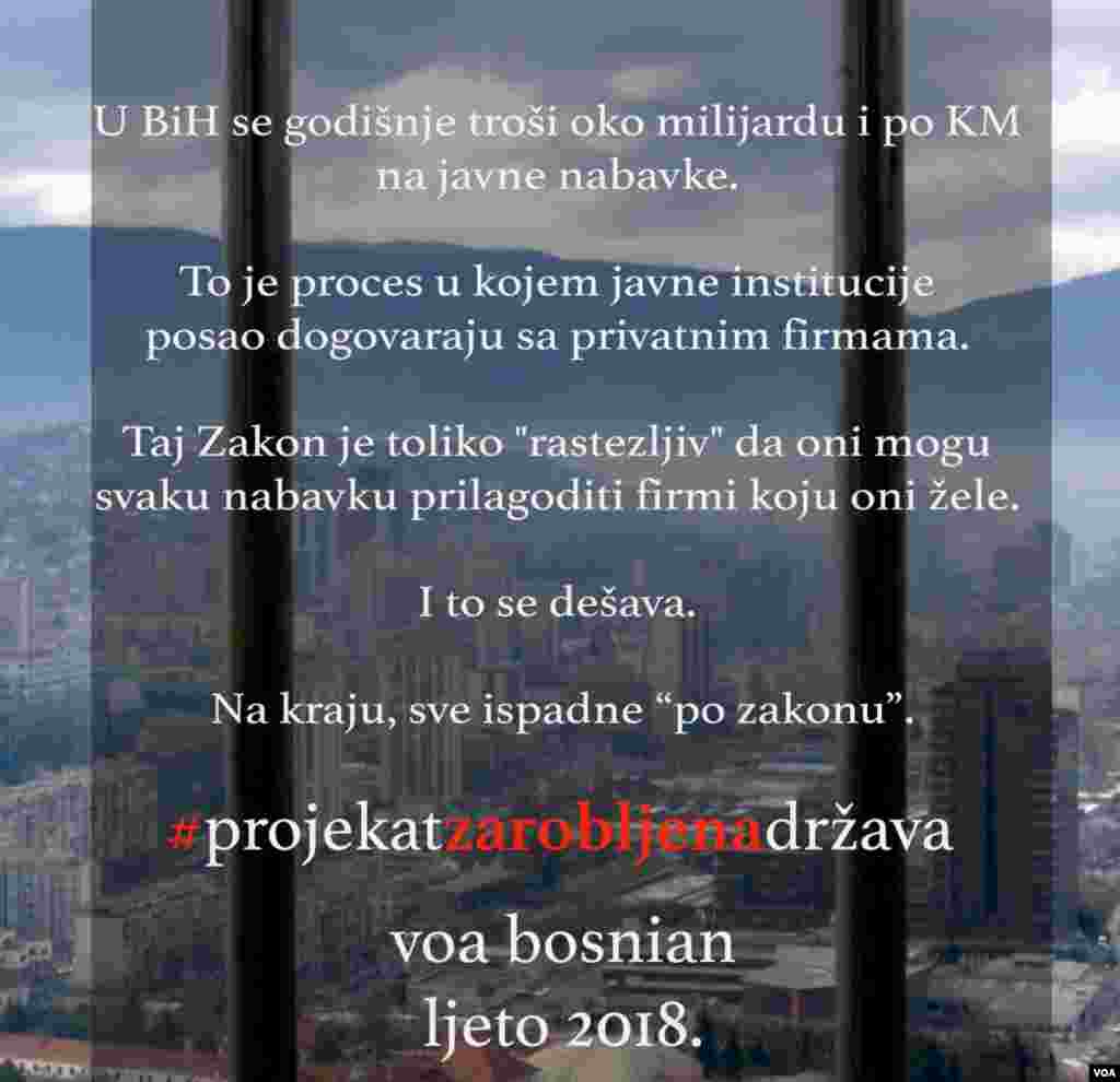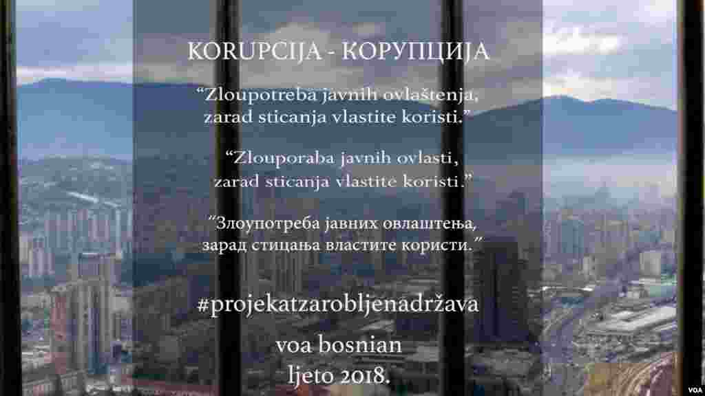 Projekat: Zarobljena država je multimedijalni i dokumentarni prikaz stanja i stepena korupcije u Bosni i Hercegovini.