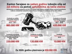 Prema istim informacijama, “po javnom pozivu za finansiranje odnosno sufinansiranje projekata pružanja pravne i druge pomoći u korist osumnjičenih i optuženih bivših pripadnika Oružanih snaga RBiH u predmetima ratnih zločina do pravosnažnosti presude, za 2020. godinu su dostavljena tri zahtjeva i još uvijek nije donesena odluka o dodjeli sredstava”.