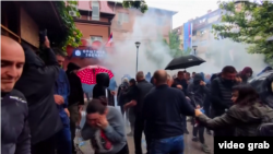 Na ulazu u opštinu Zvečani došlo je do bacanja suzavca i eksplozije metaka, dok je najmanje jedan policijski automobil zapaljen.